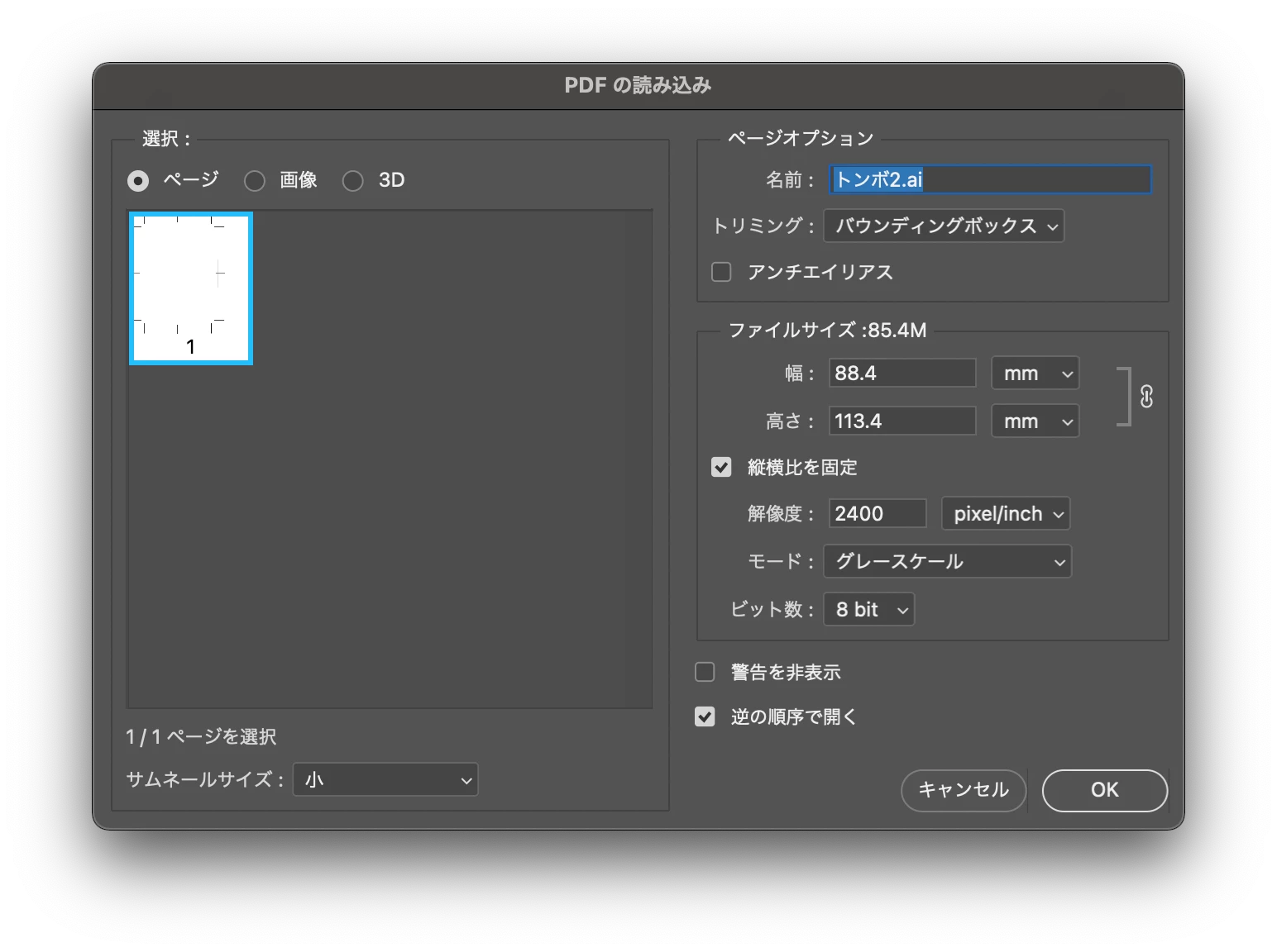 まずIllustratorデータをPhotoshopにドラッグして開きます。