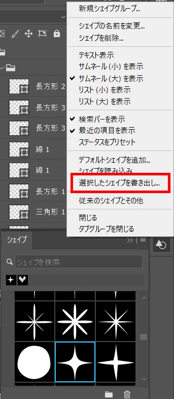 カスタムシェイプの書き出しがグレーアウトしていてできない