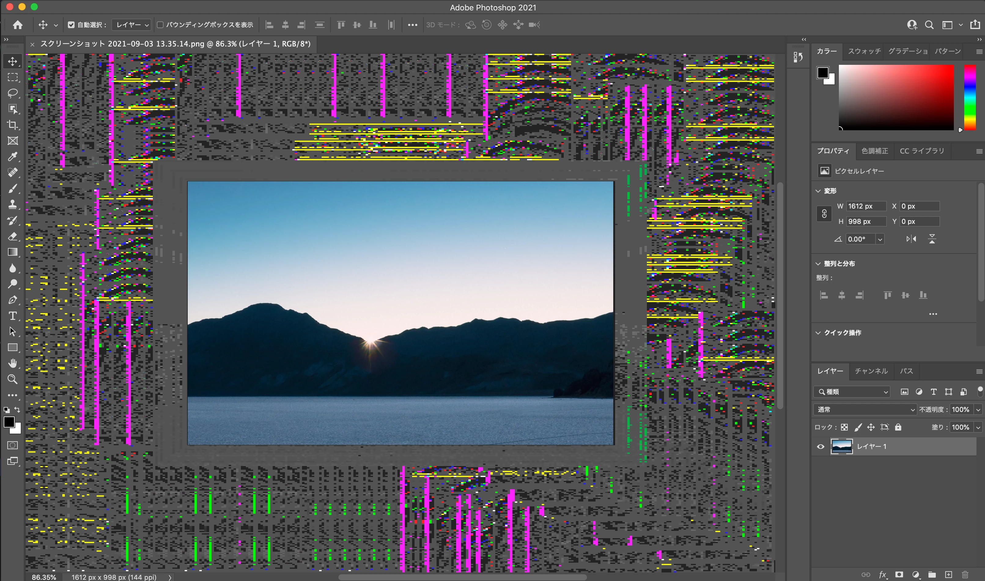 photoshopでデータを開いた時、カンバス外にバグが発生し、データを動かせば動かすほどそのバグがひどくなります。アンインストールや再起動など色々と試しましたが、解決しません。解決法をご存知の方いらっしゃいますでしょうか?