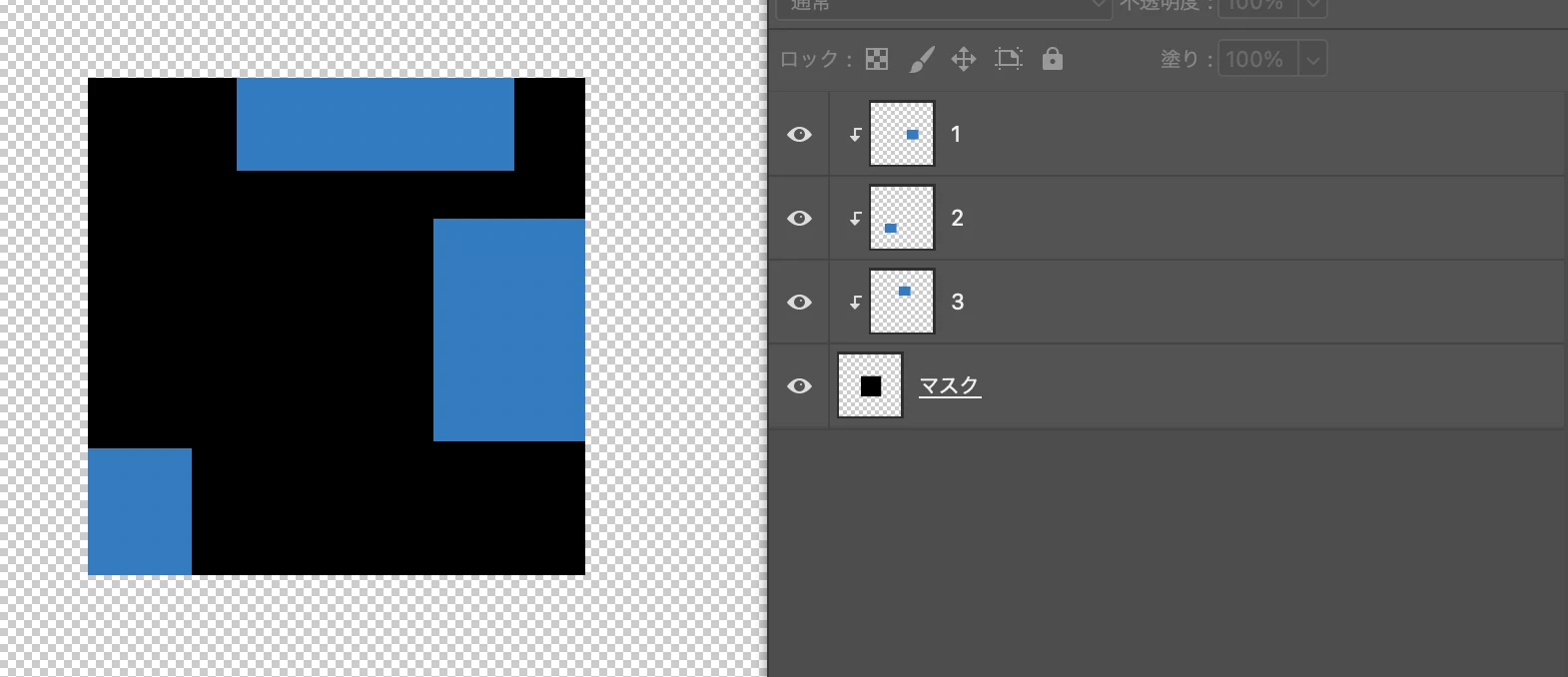 マスクされた状態の1のレイヤーだけと書いてましたが、2も3も同じような表示状態で、一時的にです。