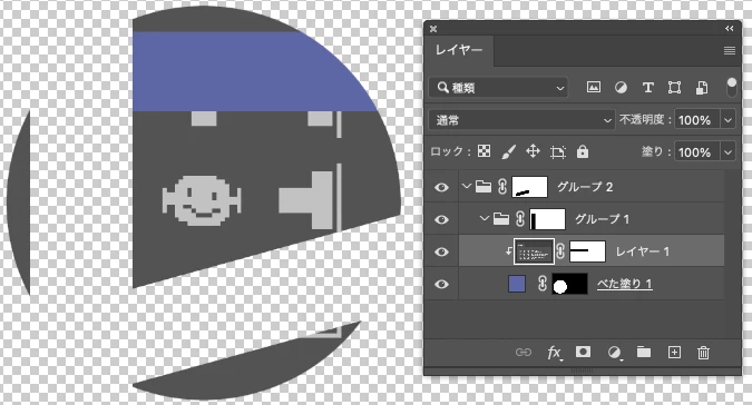 マスクの選択範囲で、そのグループにレイヤーマスクをかけています。