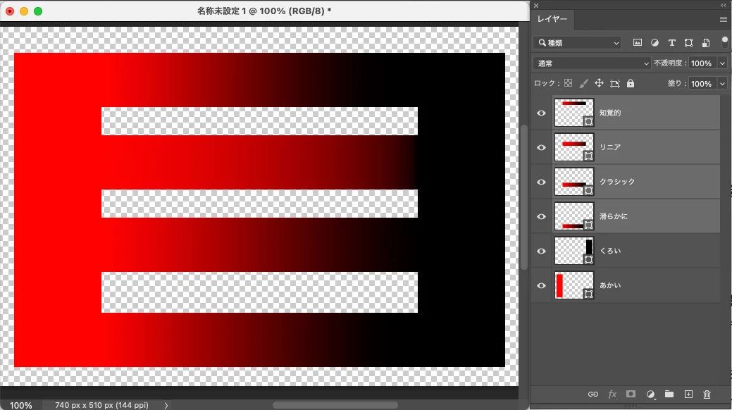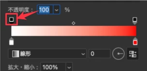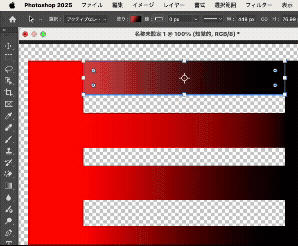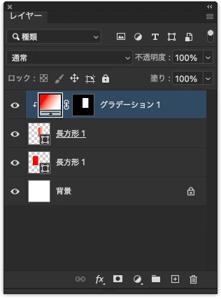 赤から黒のグラデーションを作成しており、長方形ツールの赤色とグラデーションの赤色は全く同じ色を選択しています。