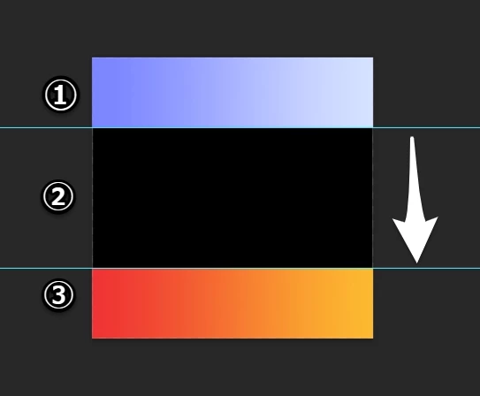 ①・③の領域にあるグラデーションを、②の領域に上から下に補完するようなグラデーションを作成するにはどうしたらよいでしょうか。