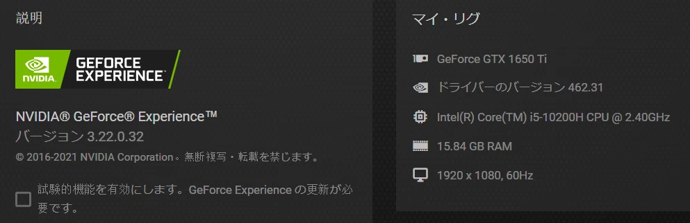 まず、グラボのドライバですがstudioドライバで462.31なら最新です。