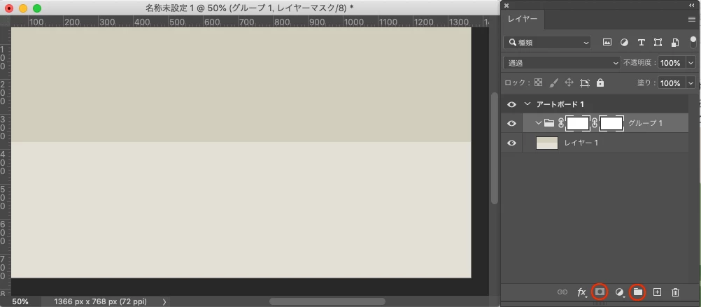 新規レイヤーグループを作成して、マスク作成ボタンを2回押します。