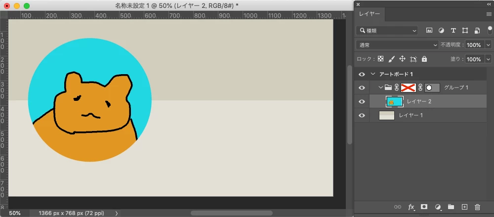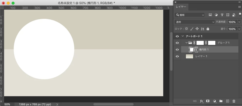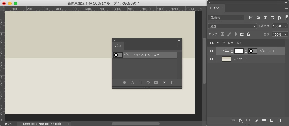 せっかくシェイプという用語が出てきたことだし、ベクトルマスクでの手順をやってみます。