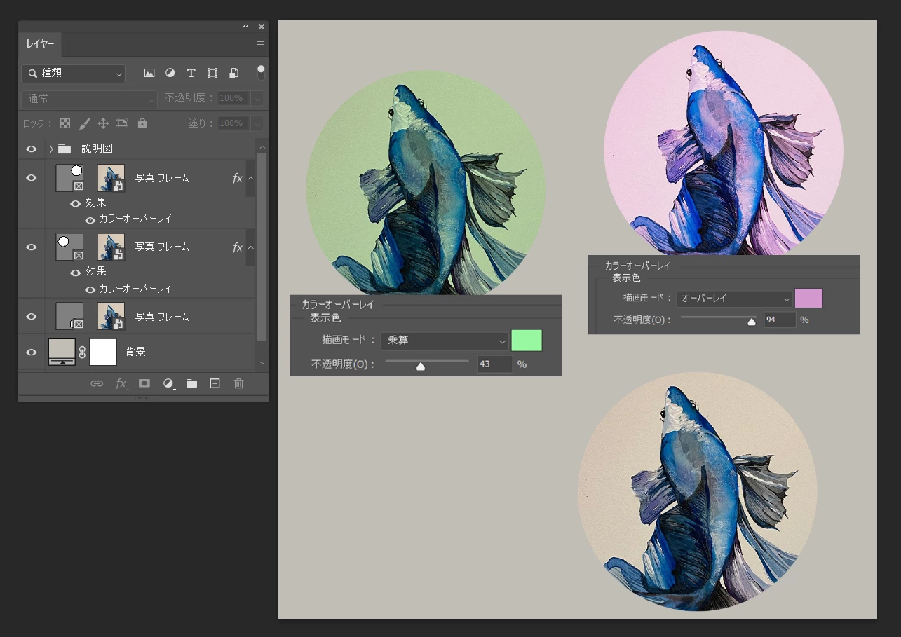 『レイヤー効果:カラーオーバーレイ』については、次のURLを参照ください。