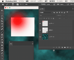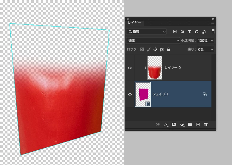 レイヤー構造としては、白い長方形シェイプの上に透過画像が乗っているという状態です。
