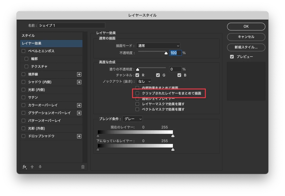 シェイプに画像をクリッピングするとシェイプ外はマスクはされるのですが、背景が当然白のままです。背景を透明にしたくて シェイプの線や塗りをなしにしたり、不透明度や塗りを0%にすると画像も一緒に消えてしまいます。