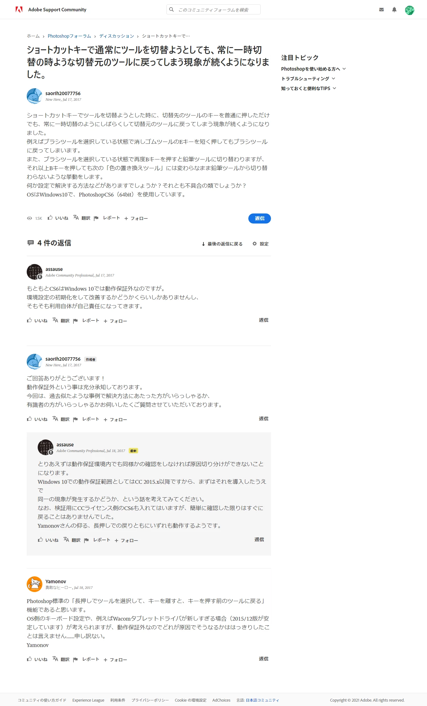 Photoshop標準の「長押しでツールを選択して、キーを離すと、キーを押す前のツールに戻る」機能と関係があるでしょうか?