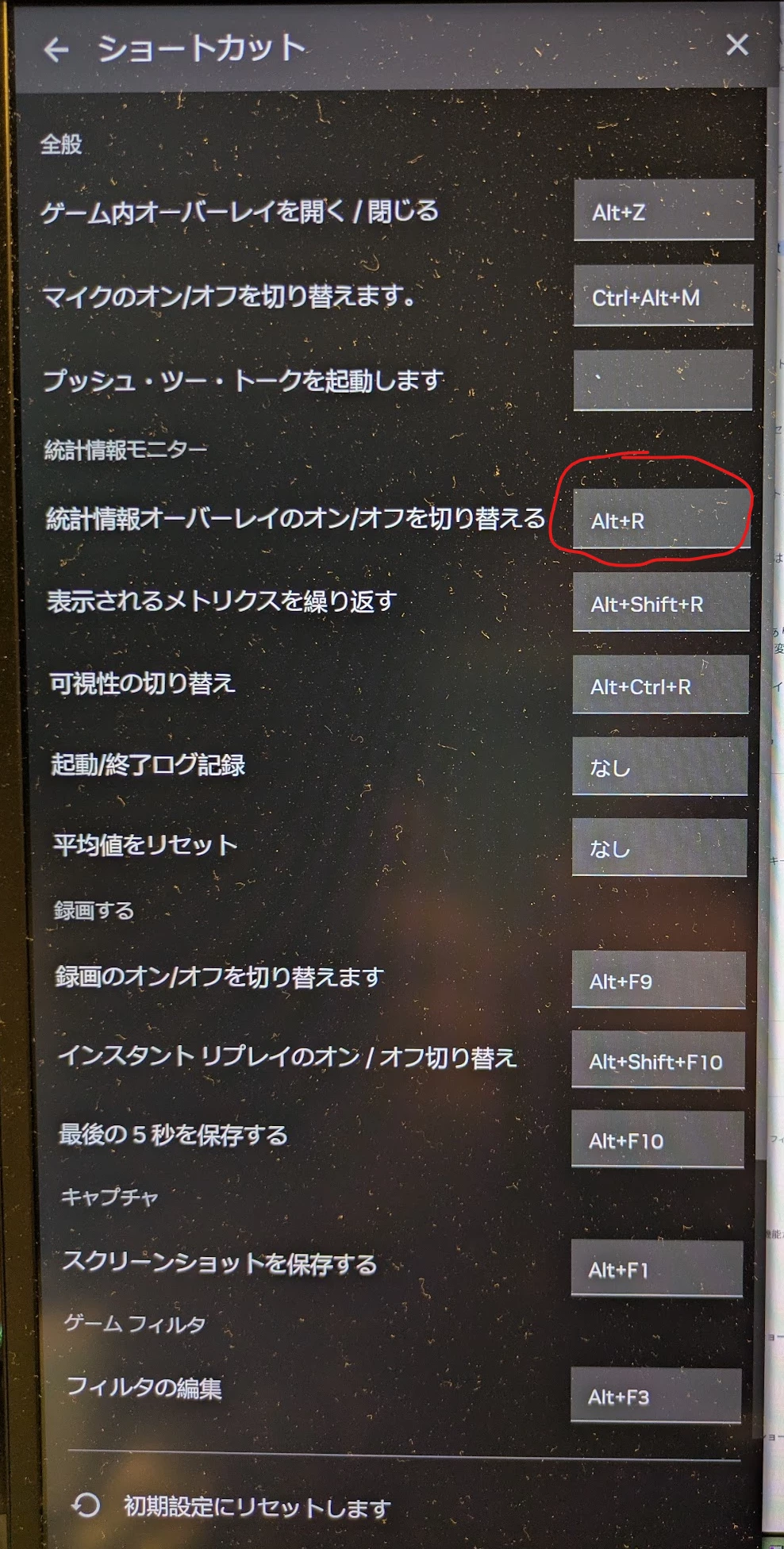 ボタンを押すとモニターの上側に添付画像のようなFPSなどの表示がでるのですが