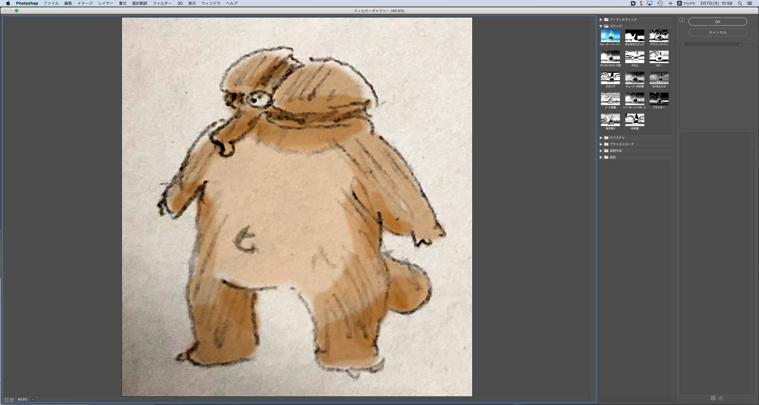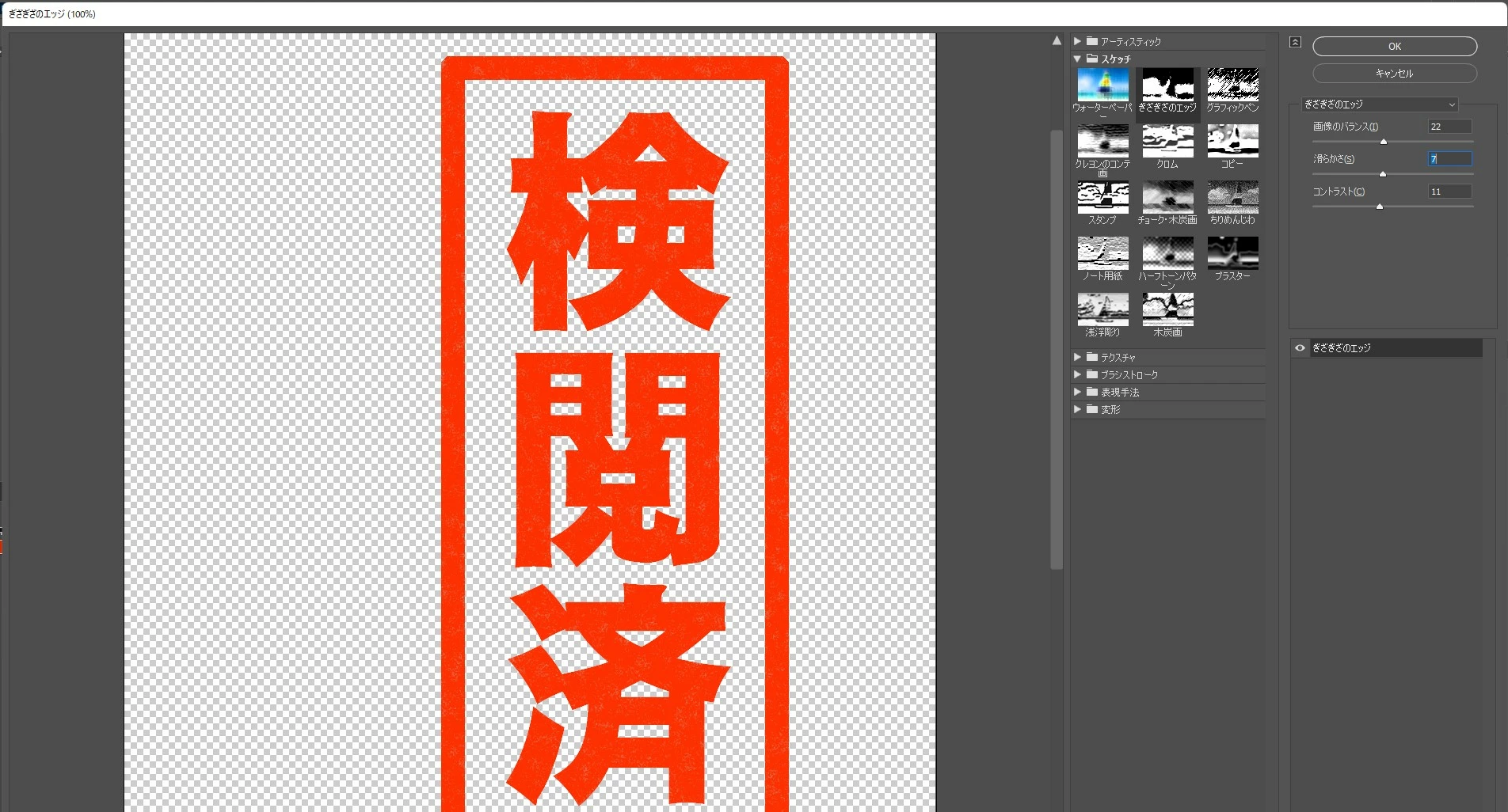 RGB+8bit設定にしてるのですが、フィルタの中に「スケッチ」がでてきません。