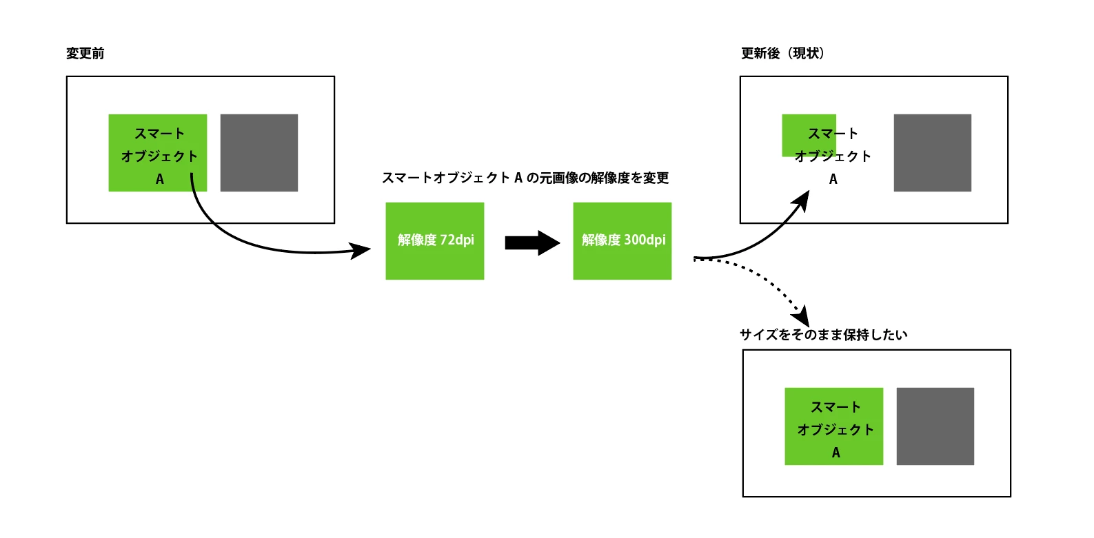 スマートオブジェクトの解像度を変更しても、表示サイズは保持したい
