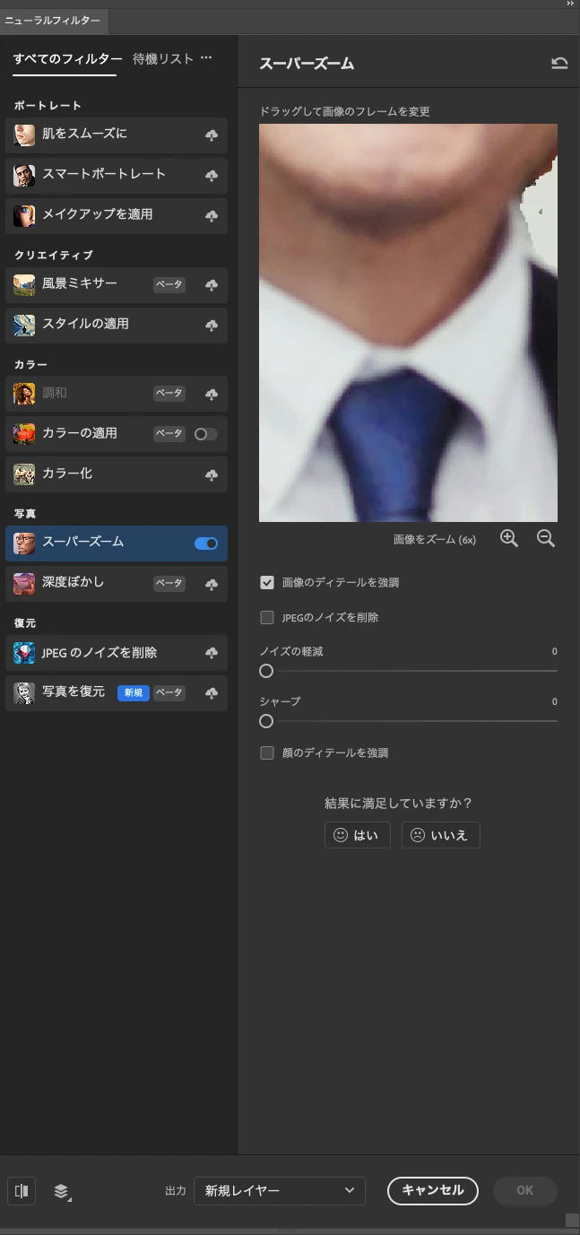 フォトショップのニューラルフィルターのスーパーズームでOKボタンが押せません。