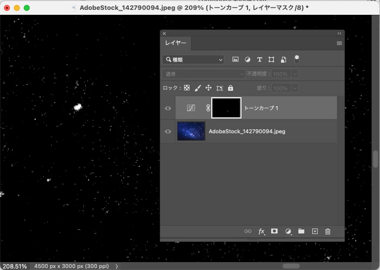 作成したチャンネルを「選択範囲として読み込む」(チャンネルパネル下の点線○アイコン)をクリック