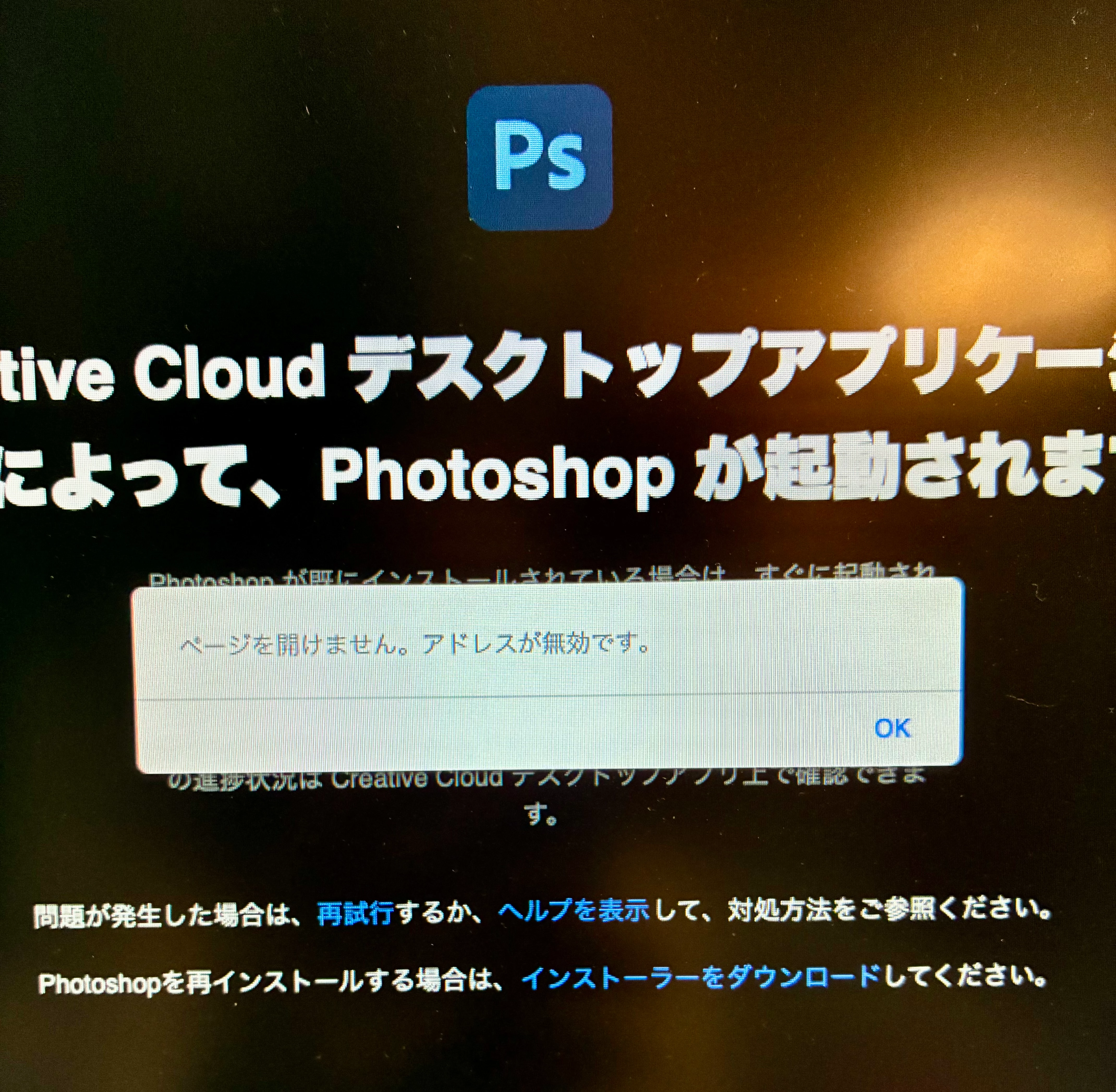 内「Photoshopを開く」を押すと別ページが開くのですが、「ページを開けません。アドレスが無効です。」とメッセージがでてしまいます。Photoshop2025を使用しています。ことはじめドリルの今月の課題なのですが、他の課題は全てできています。画像のダウンロードだけでもできれば進められるのですが画像ダウンロードも見当たらず困っています。