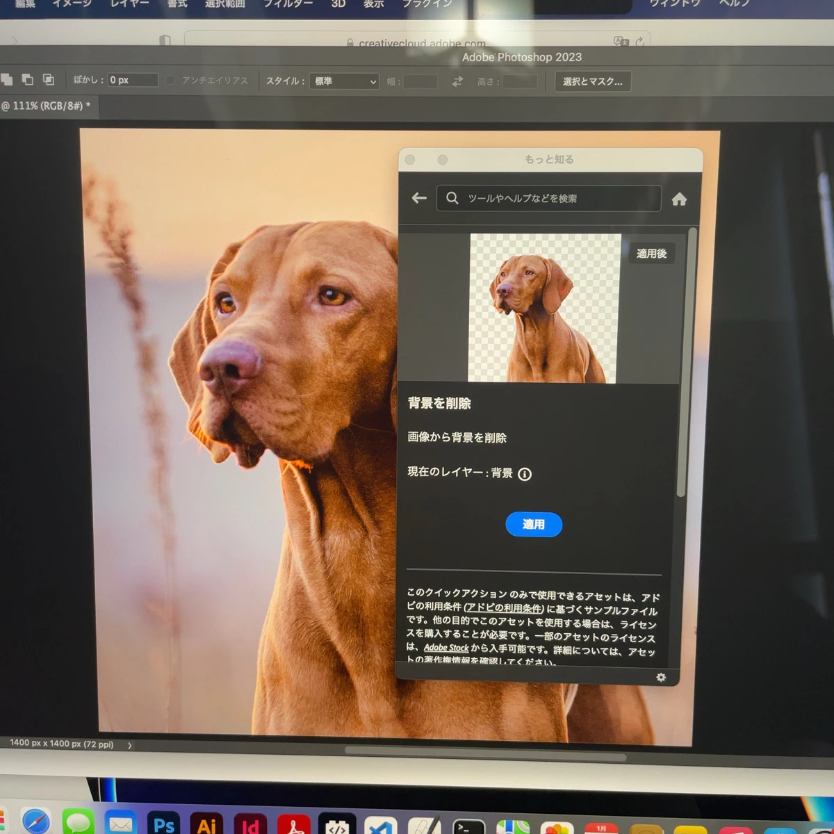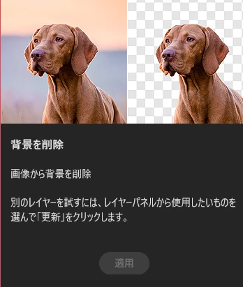 ※Photoshop 2023(V24.1)で検証しました。選択していないと、サンプルとして『犬』のレイヤーで作業してしまうこともあるみたいです。