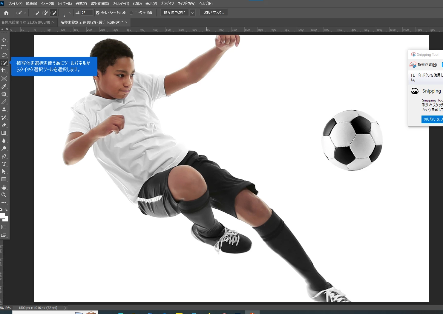 少年とサッカーボールの切り抜きでとん挫してしまいました。