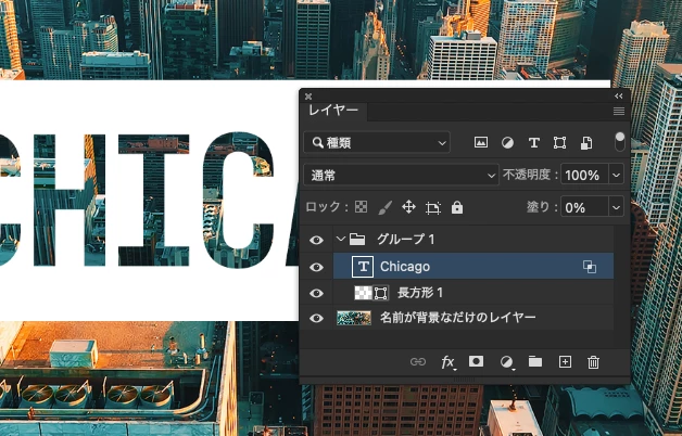 ・Command+G(グループを作成)を押してふたつのレイヤーをグループ内に収めてから、
