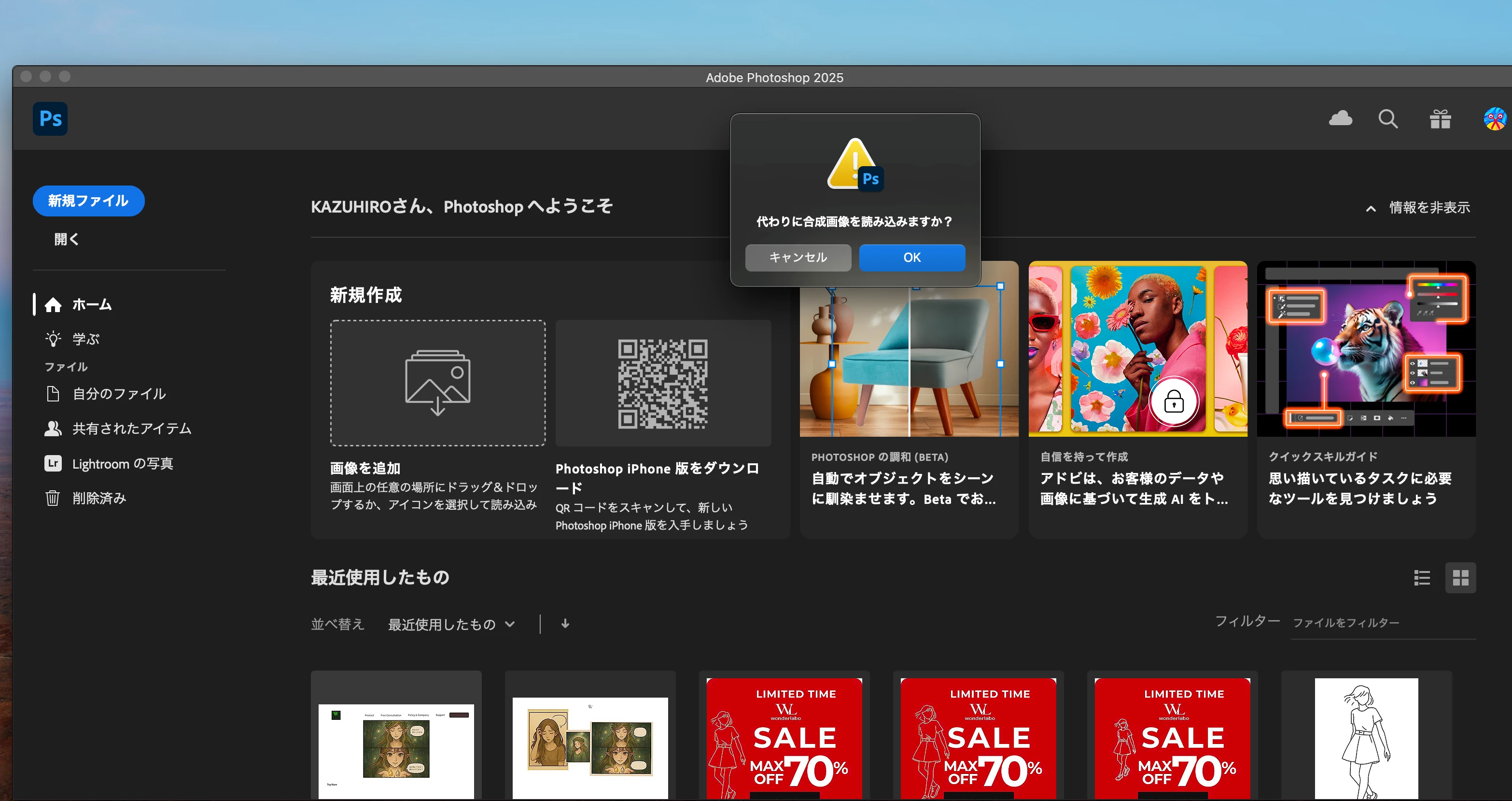 >shift,option,command押し続けでPs起動を試みるも設定以外のおかしなプロンプトが出現