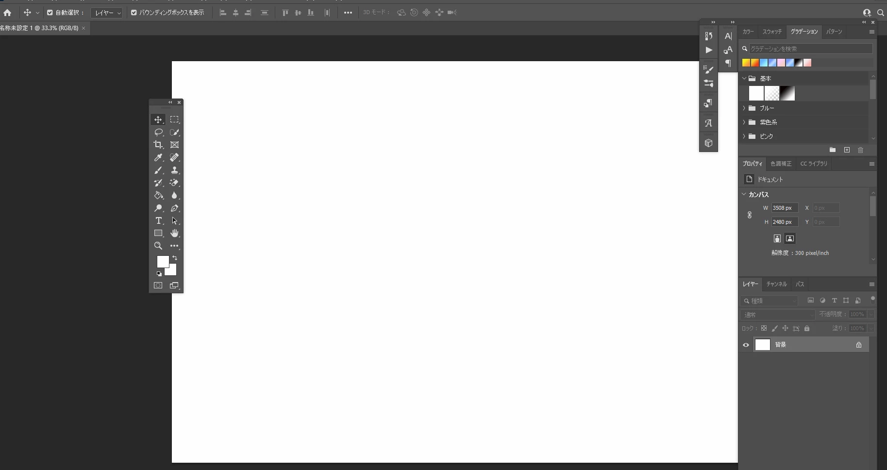 ツールバーや右のレイヤー、グラデーションタブがあるものを画面の中に合体させたいですが、どうしたらいいでしょうか?