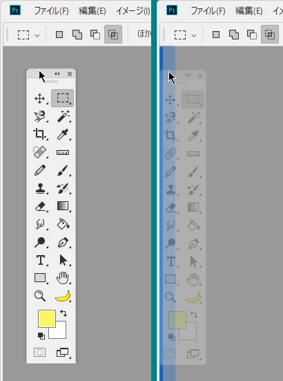 カスタムしたワークスペースを保存していない場合は,ツールをつまんでフレームの端に吸着させたほうが後が楽です。