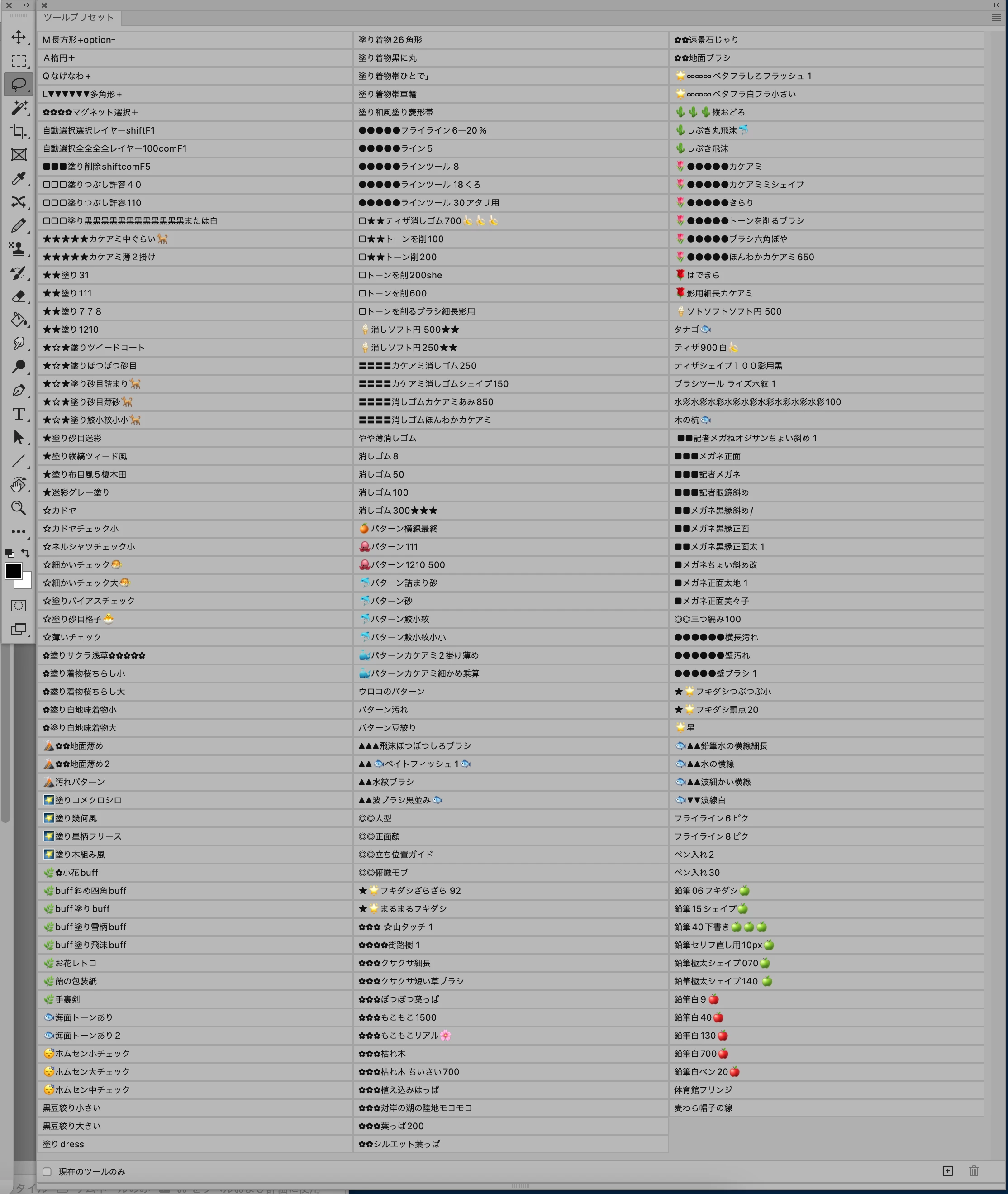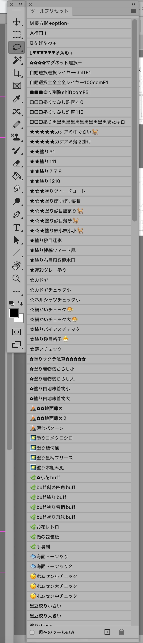 ツールプリセットの表示