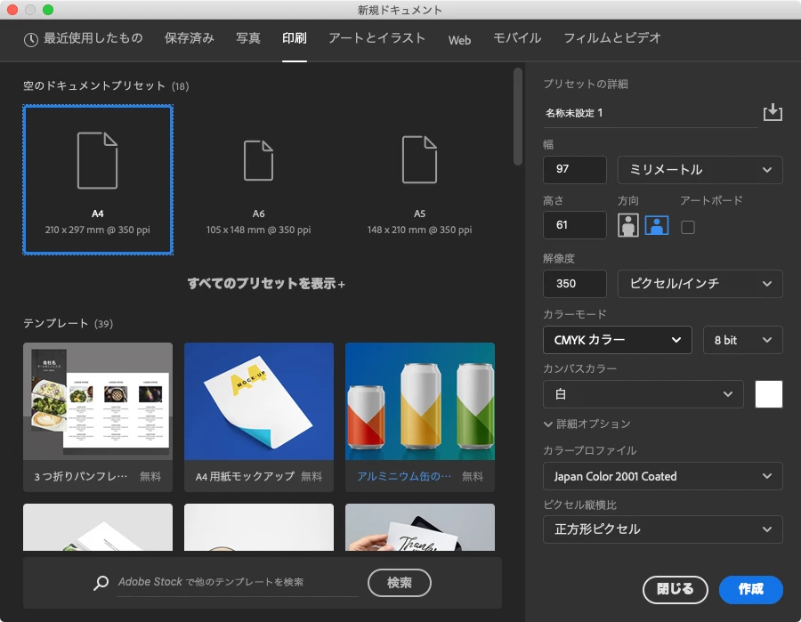 朋朋大5C7CParticipantForum|Forum|5 years agoDecember 13, 2020Questionテキストが小さすぎてガタガタになってしまいます。Forum|Forum|5 years agoDecember 13, 20202 replies1760 viewsクラウドワークスに、91mm×55mmの名刺デザインを作成する案件がありました。この名刺デザインをフォトショップで作成するとき、アートボードを91mm×55mmにしてデザインしようとすると、下の画像のようにテキストが小さすぎてガタガタの文字になってしまいます。これは、91mm×55mmと同じ比率でよりサイズの大きいアートボードを作成し、その上にデザインすることが一般的な対処法なのでしょうか。よろしくお願いいたします。macOSWindows