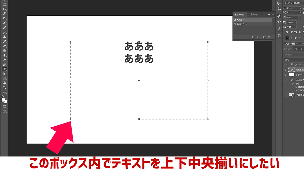 テキストを上下中央揃えにする方法を教えてください | Photoshop