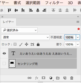 非表示にした長方形レイヤーのバウンディングボックス内で中央揃えができるという仕掛けです。