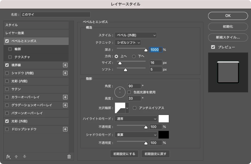 なるほど、外側の黒いエッジのベベルとエンボスの数値を見せていただいてもよろしいでしょうか?