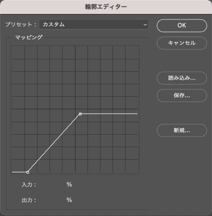 光沢輪郭のカーブです。これでハイライトにグレーを入れました。