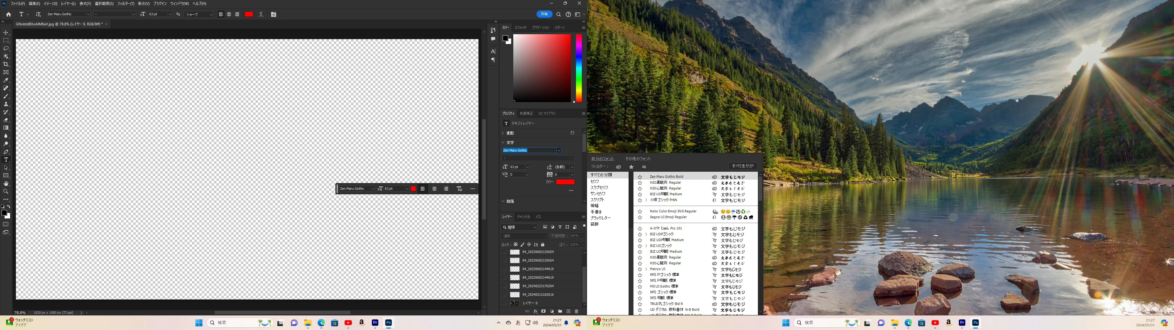 プロパティパネルや文字パネルよりフォント選択をする場合、パネルが右端にあるとそうなりますので、その場合はオプションバーやコンテキストタスクバーよりフォント選択するのが対処法になります。