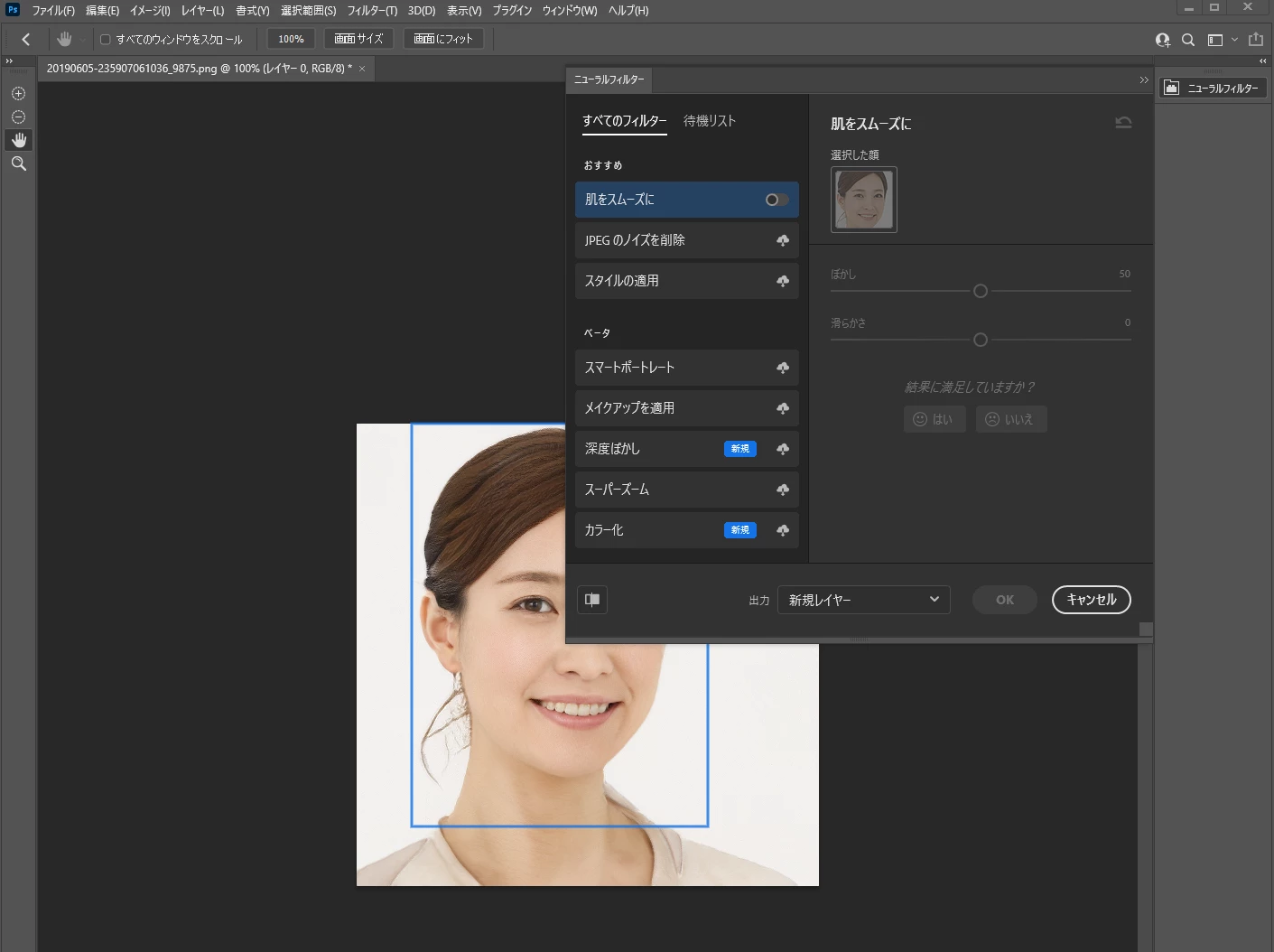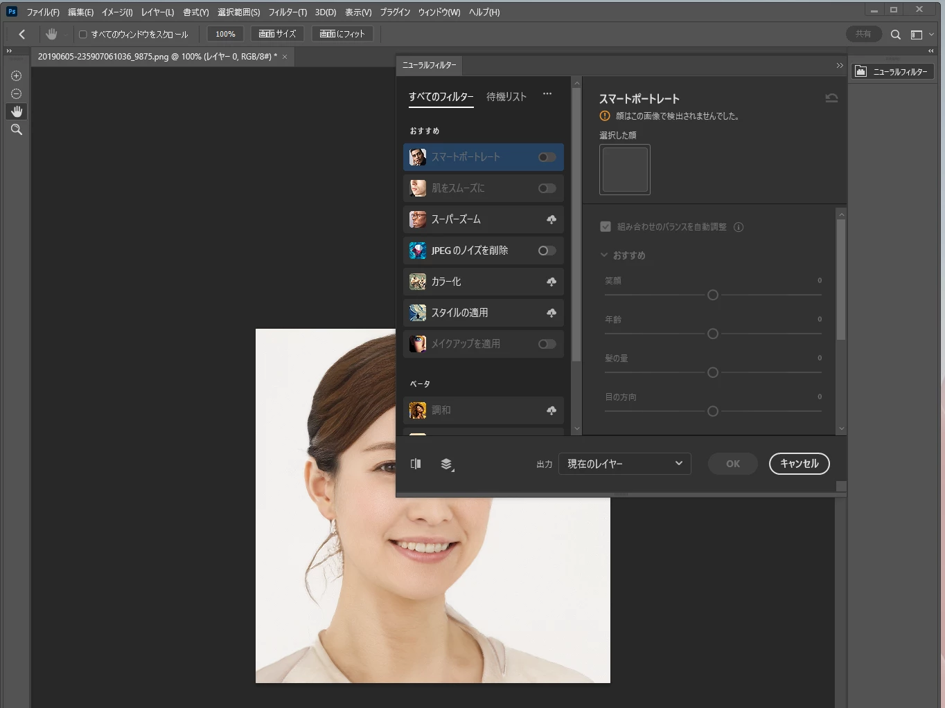 ニューラルフィルターでの顔認識について