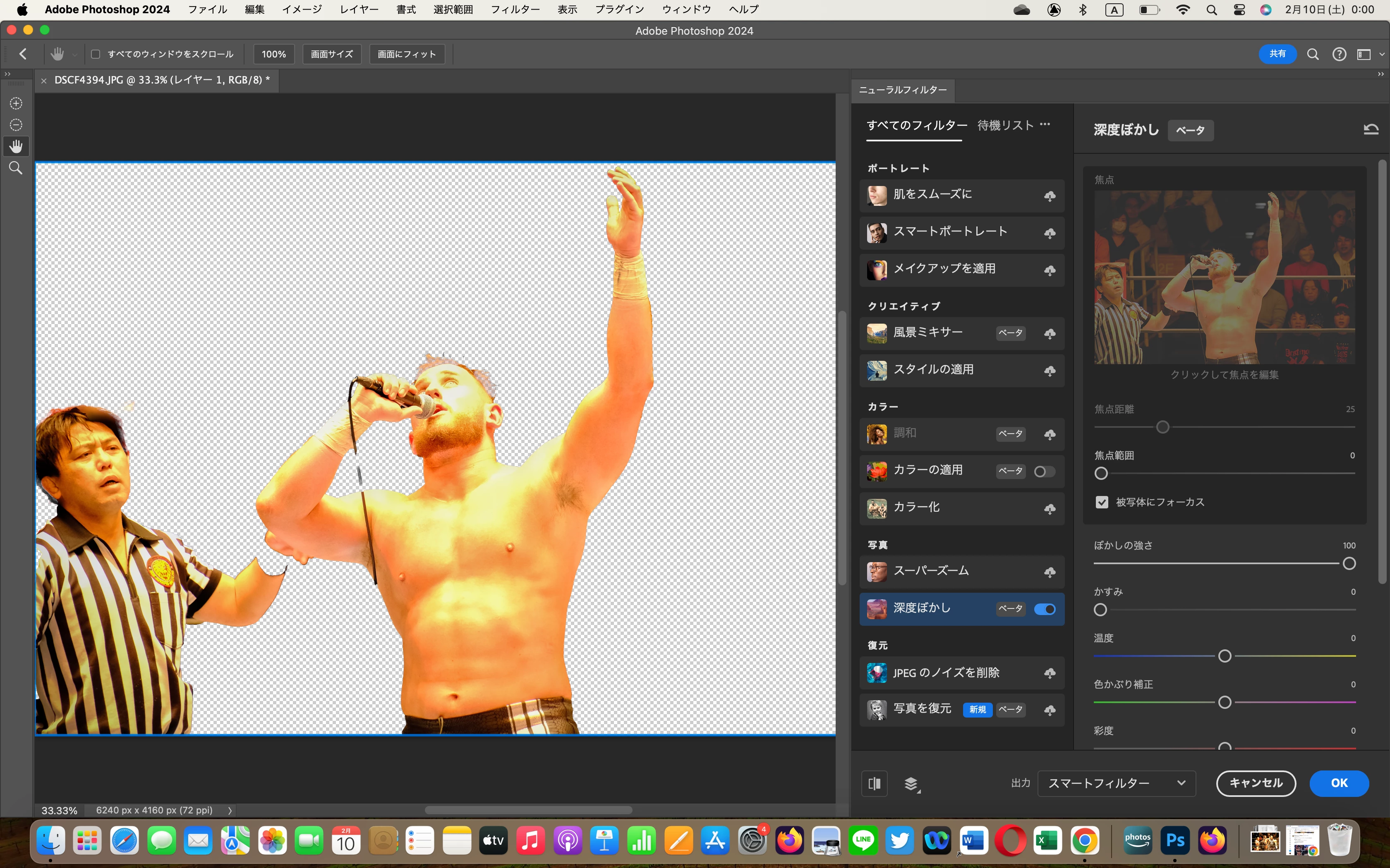 被写体を選択した後にニューラルフィルターをかけていますね。