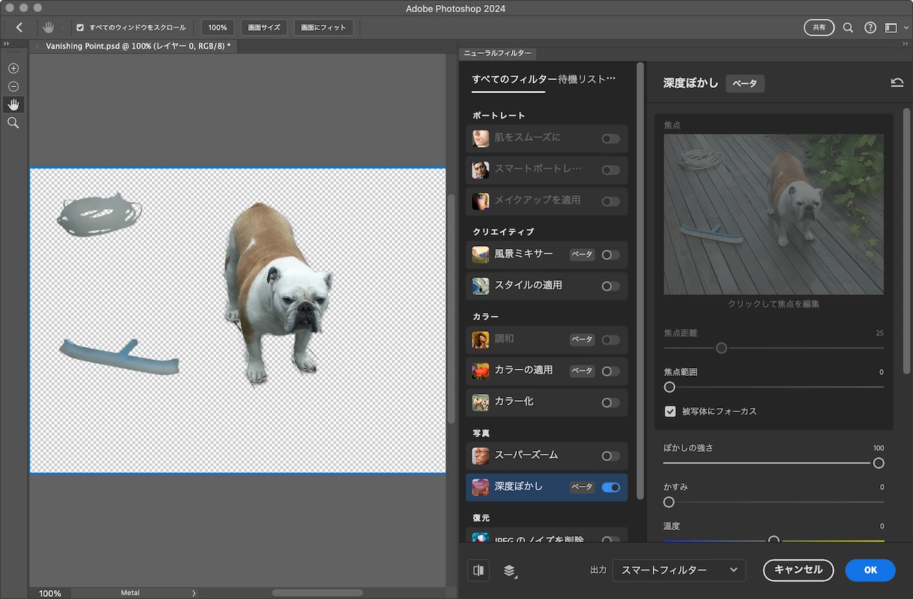 ニューラルフィルターを選択すると以前は選択した被写体以外もしっかり画像として出ていたのですが、急に被写体選択した部分以外は背景が透過した状態で表示されてしまいます。