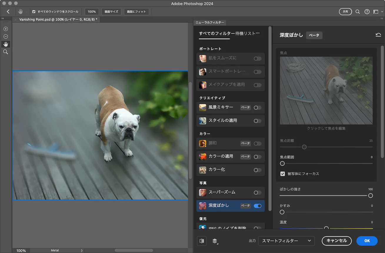 100にしても深度ぼかしも出来なくなってしまいました。