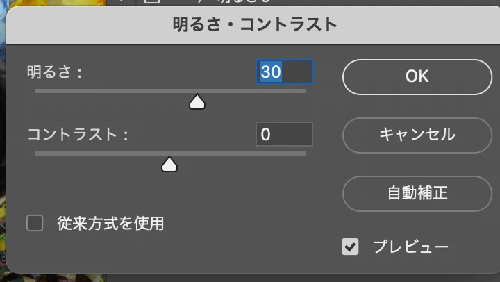・都度、明るさ調整コマンドが開き、OKボタンを押さないいけない