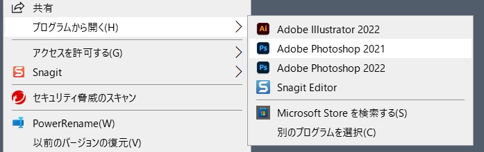 Windowsの場合なら、PSDファイルを右クリック>プログラムから開くにて、起動するPhotoshopのバージョンを選択できます。