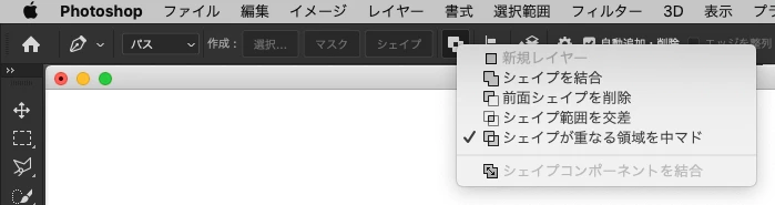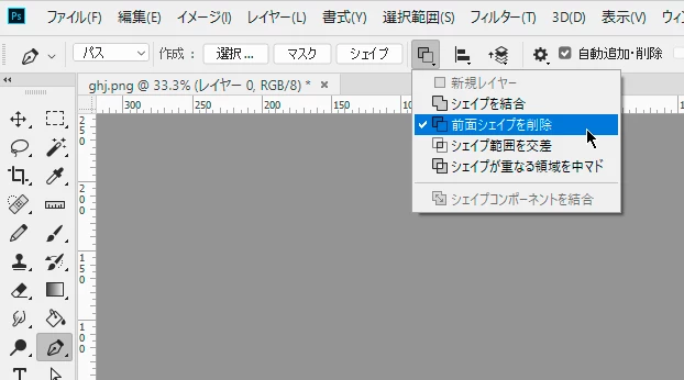 思いつくのは,オプションバーの「パスの操作」で「前面シェイプを削除」が設定されてしまっていることかしら。もしそうなら用途によって使い分けましょう。