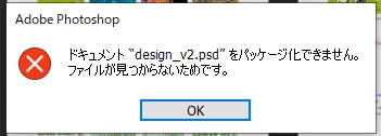 Photoshopのパッケージ化が失敗するようになり困っています。