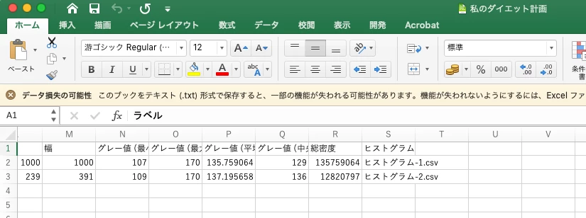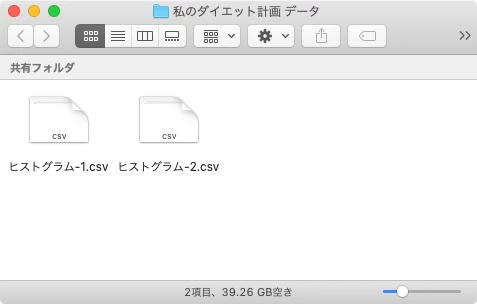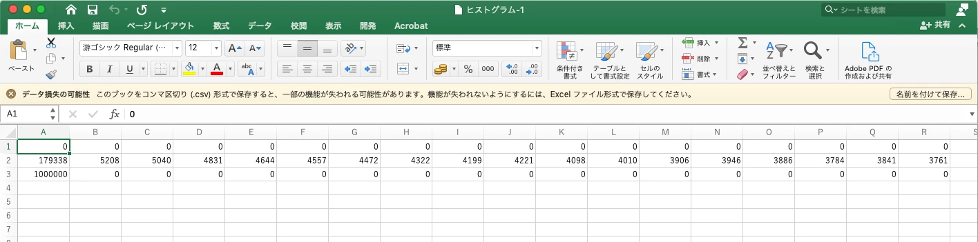 その中にヒストグラムのcsvデータが書き出されているのでエクセルで開くことができます。