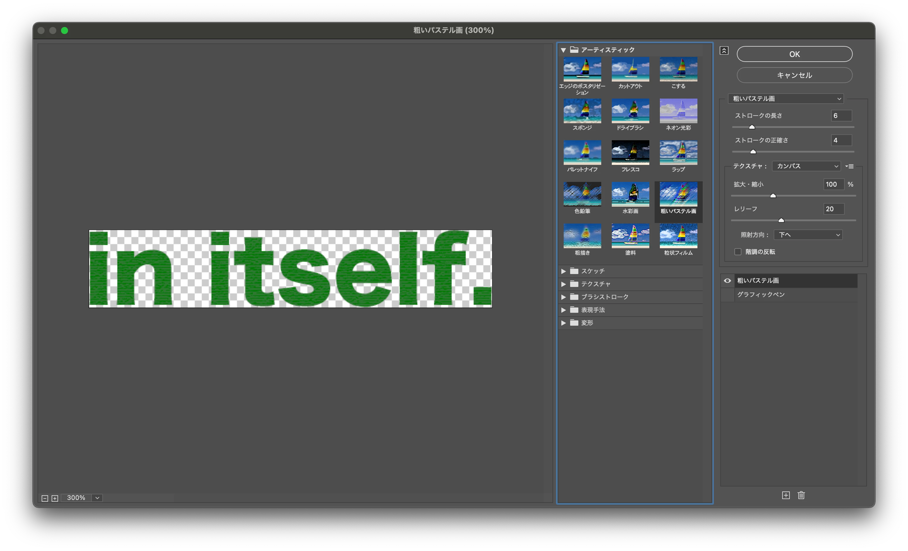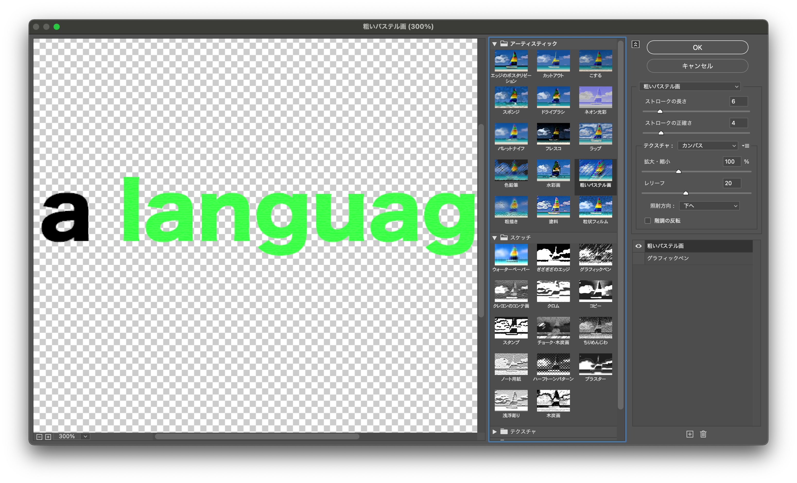 フィルターギャラリーの「粗いパステル画」を適応させたかったのですが、