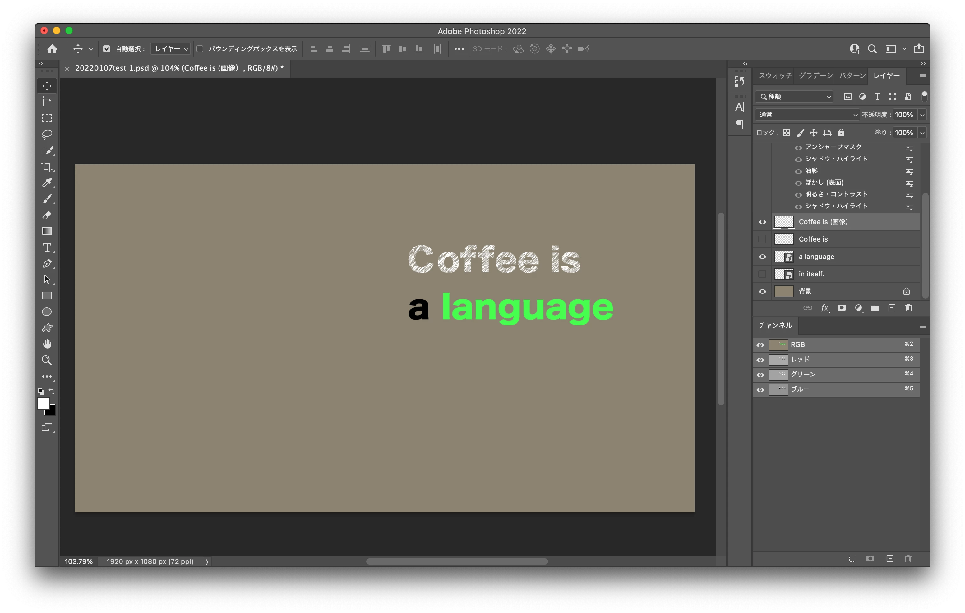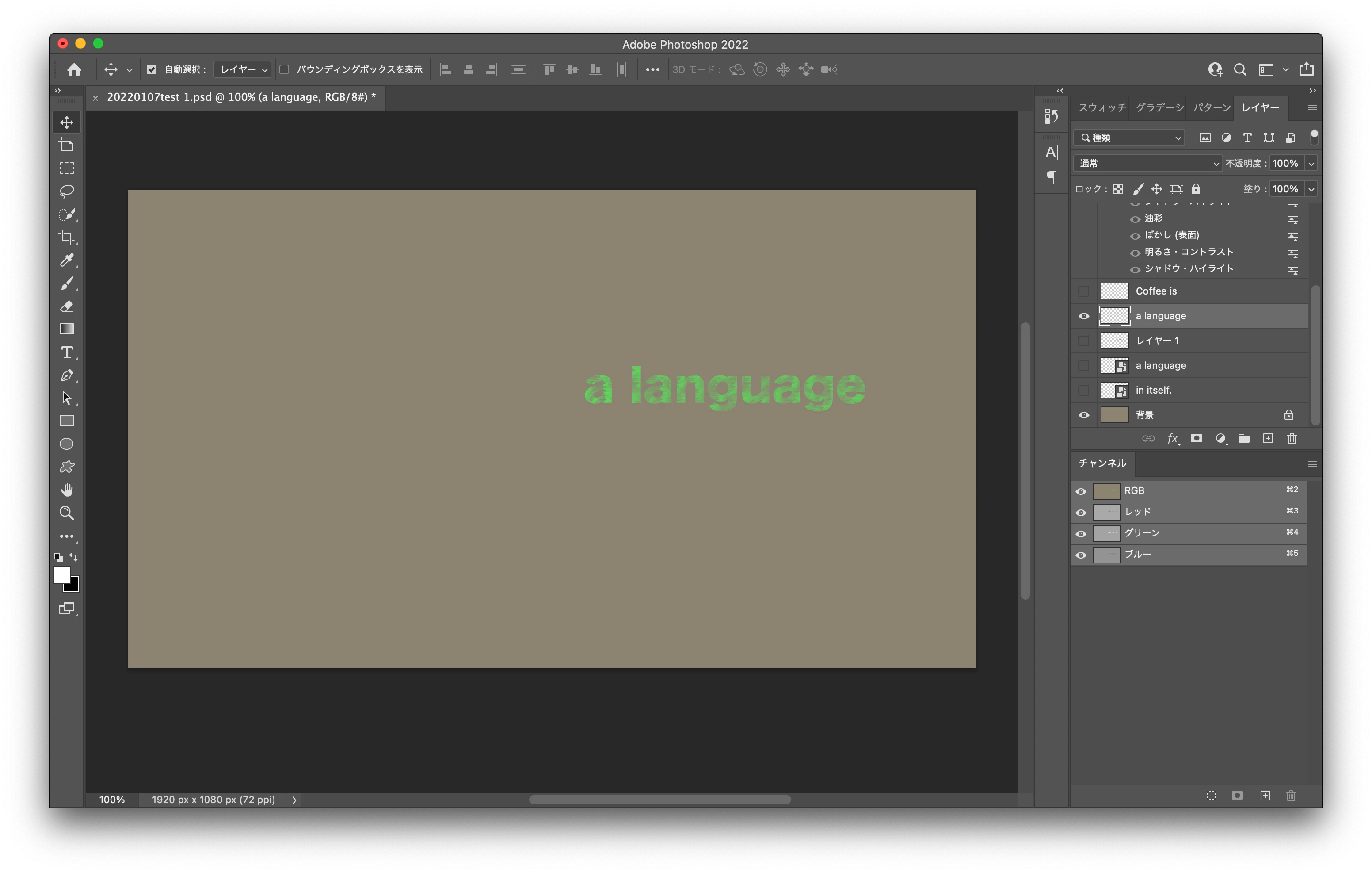 添付画像の「a language」という文字をスマートオブジェクト化したものに対して、