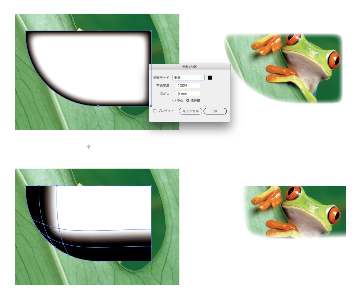 ぼかすというのは、背景となじむように一部分の縁だけをぼかしたいということです。