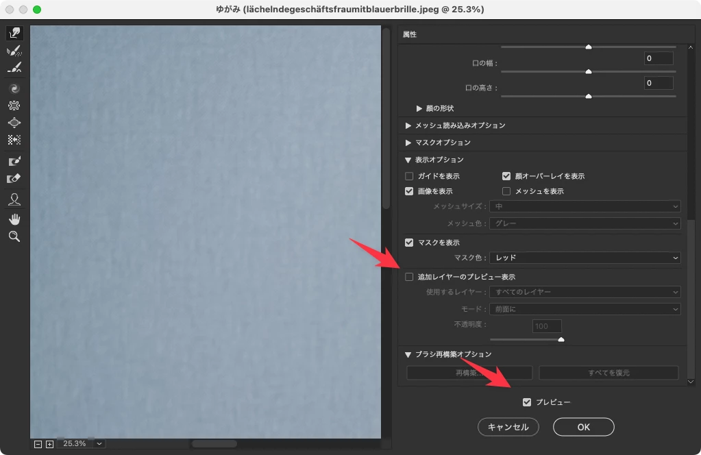 フォトショップのゆがみのプレビュー