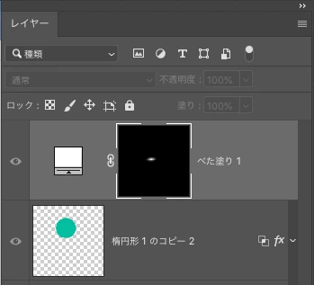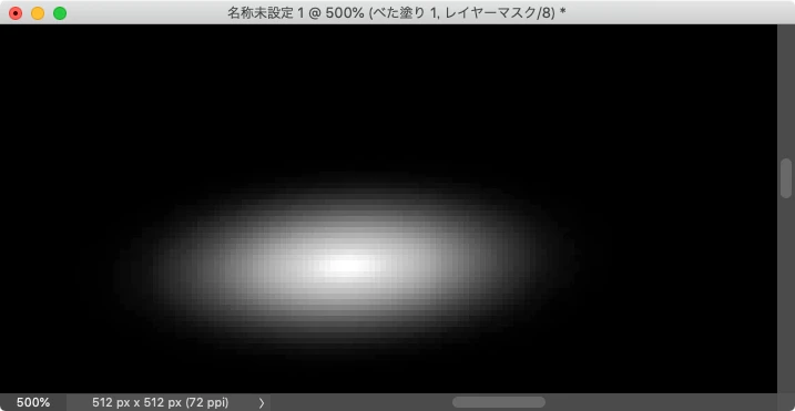 べた塗りの調整レイヤー(白)にレイヤーマスクを作成して、マスクにボケボケのブラシでチョンと塗ったものを自由変形、トーンカーブで中間調を調整したもの