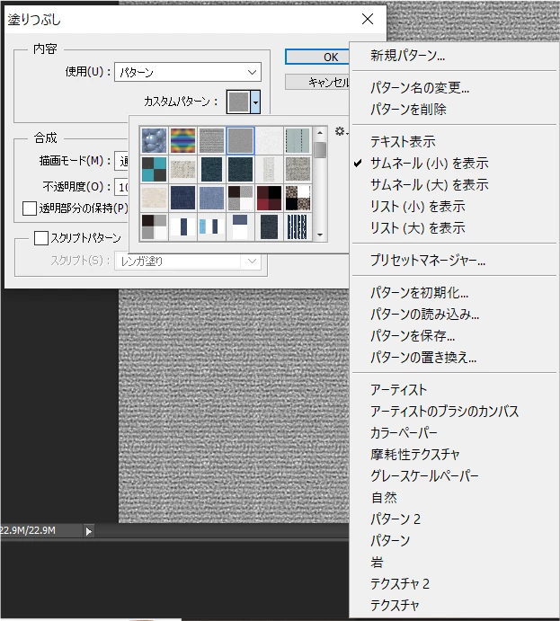 フォトショップ 編集 塗りつぶし パターンを新バージョンに移行したい