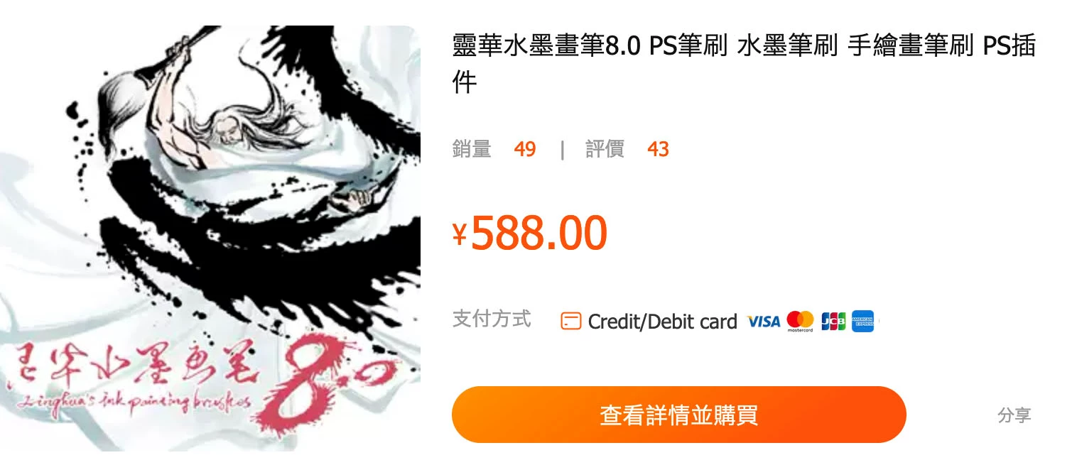 タオバオ(中国のAmazonの様なショッピングモール)の中にPhotoshopのブラシセットがあることがわかりました。他の水墨画風のブラシには無いような本格的な機能を持っていることがわかりますます使ってみようという気になりましたが。更に良く見てみると…