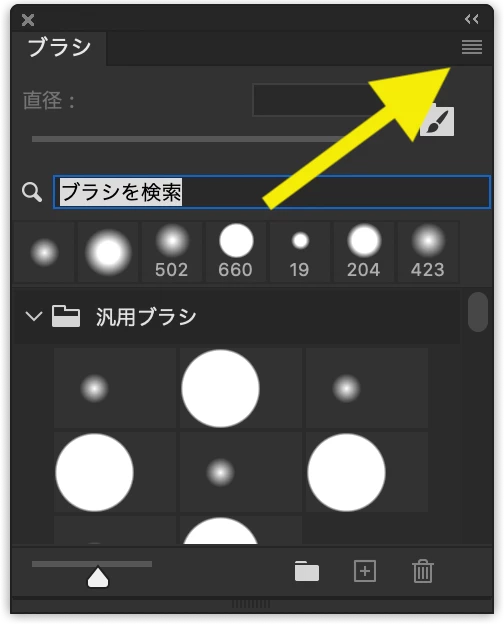 と説明がありますが、表示されたパネルには右クリックしても他のブラシを入手とはでてきません。